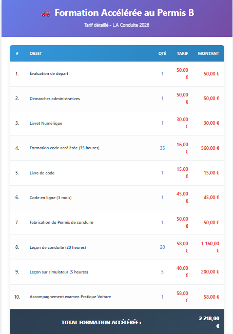Formation traditionnelle | Permis accélérée | Avantage | |